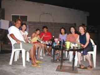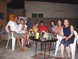 バーベキューは8:00pm〜 スコールを心配しながらBBQを楽しんでいたらヤッパリのスコール、あわててレストランへでも満足、ま・ん・ぞ・く・・