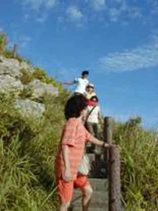 がんばったブン、風が爽やかで360度の眺めはすばらしい地球の丸いのが見えるから