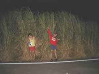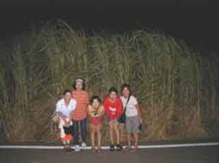 マロの前のさとうきび畑の前で (西村、松井、デグ、アイカ、私)
