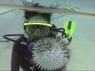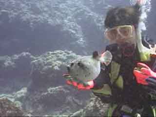 ノギチャン、コクテンフグと遊ぶ? アイカ、ハリセンボンと遊ぶ?