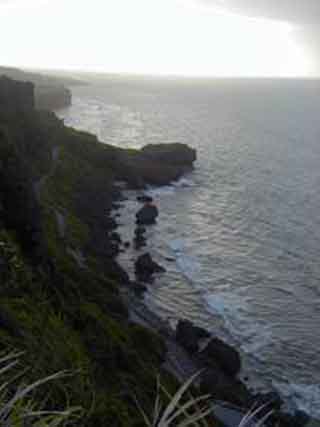 伊江島の観光スポット“ワジ”へ、台風6号接近で荒々しいワジの海を眼下で見て