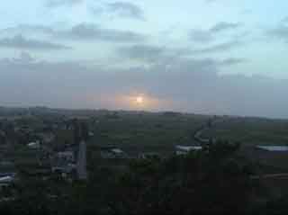 早く目がさめ、台風が心配・・・・・まだ朝日も出ていないコテージのテラスで