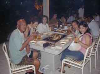 もうお腹もペコペコ、リゾートへ帰りBBQパーティ ノギチャンの打ち上げもかねてマリーンのスタッフも来てワイワイ