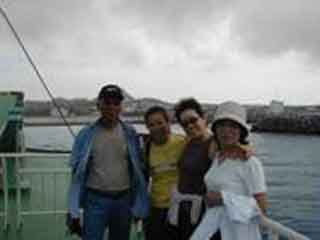 伊江港で、ママも見送りに来てくれた