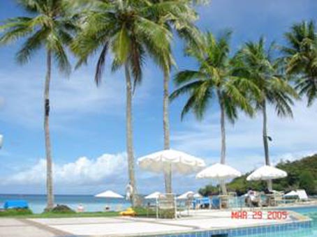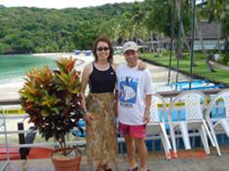 バックにPPRのプライベートビーチ サトコチャンといっしょに