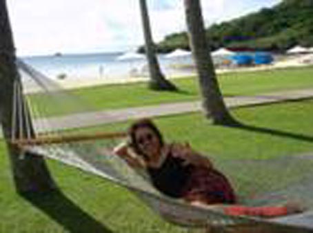 ランチを食べながら休憩、ガイドの米沢さんとパラオのことサトコチャンとの