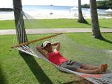 ギラギラ南国の太陽が照りつけるビーチのパラソルの下で横たわると
