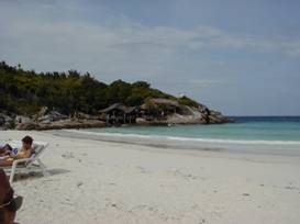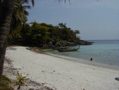 船が着いたビーチとは反対のビーチへ?小さな島だがジャングルに中をバイクのサイドカーのようなものに乗りまさしくジャングルツァー、道なき道のすごいところを進むこと何分か・・・・ヤットのことでビーチへ