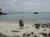 ラヤ島に着いて初めて降りたビーチ、真っ白くてサラサラの砂浜に感動