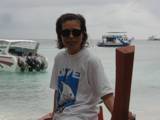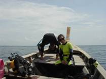 ラヤ初ダイブ1本目 ボートだが木造りのエンジンが付いただけのボート(ロングテールボート)こんなボート見るのも乗るのも初めて