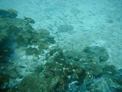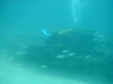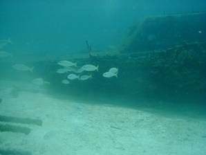 タイタニック??ボートのような沈船にもサンゴが生息して魚のカッコウに住処になっている。ビデオを持って入らなかったことを悔やみながらデジカメのシャッター