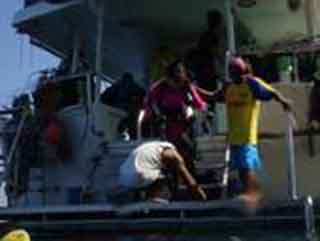 ロングテールボートに乗りかわりビーチまで、ビーチに足がついても