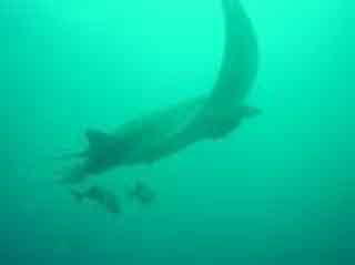 エキジットしてきた人から興奮状態で¢マンタが群れてたーー!£ と。ショック!