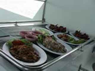 朝食、朝から豪華メニューでダイバー達もクルージングになれたこともあり、