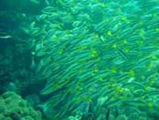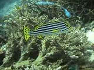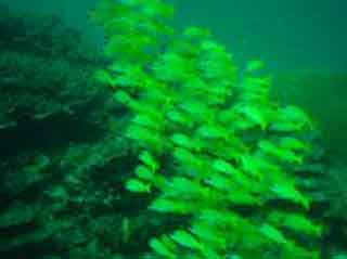 かわいいチョウチョウウオたち、ローニンアジの軍団が泳ぎすぎていったり、