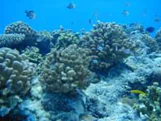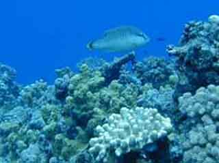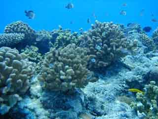 ガラスのように光をとおす遠浅のさんご礁に潜れば、