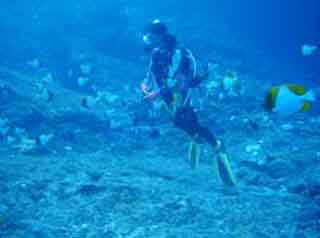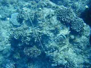 一人なので気ままに・・・・思いつくまま・・・しばらくして大きなサンゴの根の方へドンドン行って気がつくと40m エキジットの安全停止3mで16分とコンピュータが??無視してあがったら、ダイブコンピューターが停止したまま。