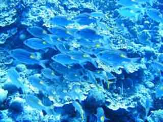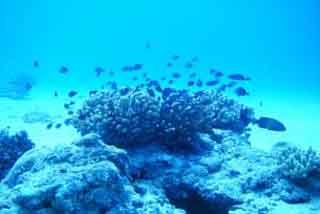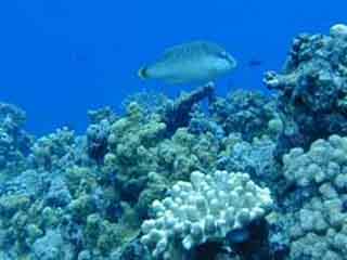 ダイバーがいないためかウミガメが3匹も逃げることもなく、いっしょうに泳いでいる。ナポレオンフィッシュの子供達も元気に泳いでいる、
