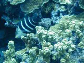 ビーチからでもエントリーできるが、ボートからエントリー白い砂地でサンゴとコーラルフィッシュで楽しいポイント